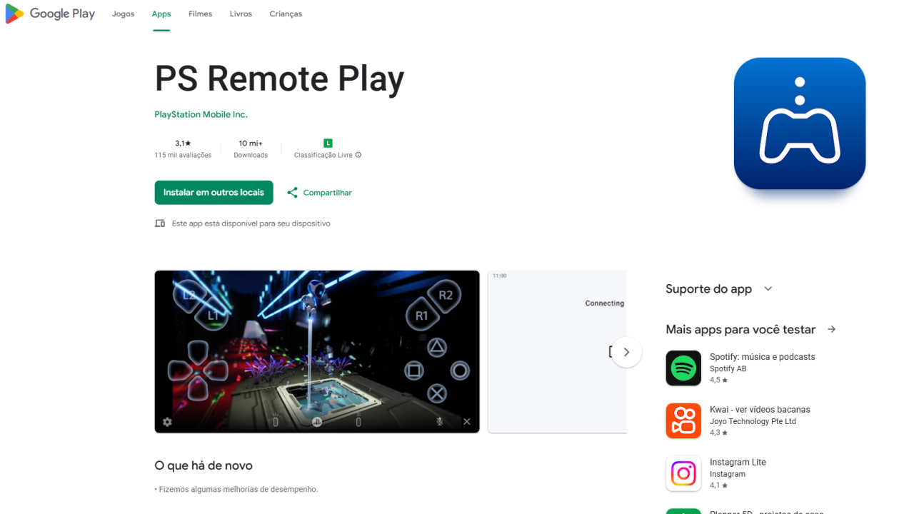 O próximo passo é baixar o aplicativo PS Remote Play no seu smartphone. Você pode encontrar o aplicativo na Google Play Store para Android ou na App Store para iOS. Aqui estão os links diretos: